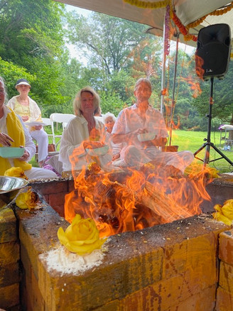 When you sponsor you are part of the ceremony at the fire with the Pundits doing the offerings (rice, herbs, flowers). If you are an attendee or provide a general donation, you will not be sitting in front of the fire. You will be seated in chairs around the fire where you can be part of the energies but not offering directly to the fire.